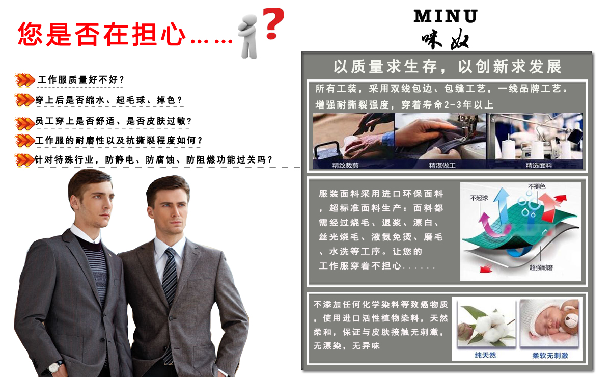 業內首家擁有企業形象設計顧問團隊,為每一家合作企業提供一對一式的企業員工形象塑造設計,讓您的工作服更有企業文化。
